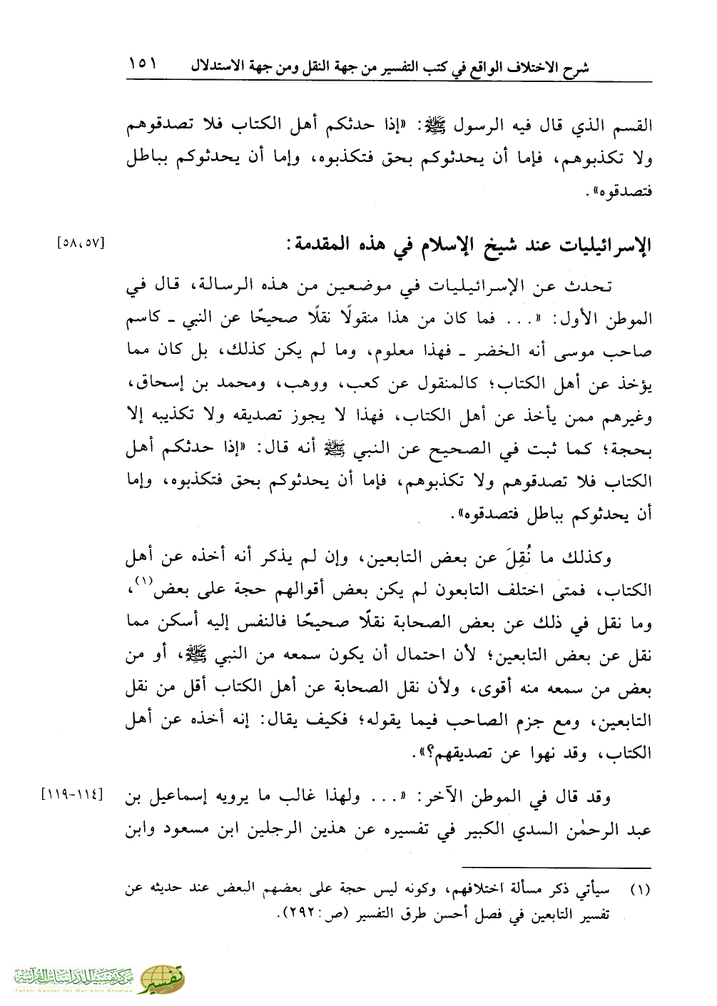 (¬1) سيأتي ذكر مسألة اختلافهم، وكونه ليس حجة على بعضهم البعض عند حديثه عن تفسير التابعين في فصل أحسن طرق التفسير (ص:292).