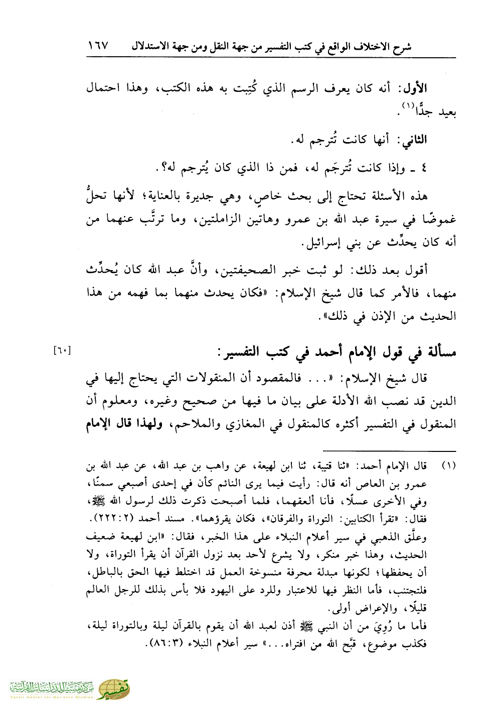 هذه الأسئلة تحتاج إلى بحث خاصٍ، وهي جديرة بالعناية؛ لأنها تحلُّ غموضًا في سيرة عبد الله بن عمرو وهاتين الزاملتين، وما ترتَّب عنهما من أنه كان يحدِّث عن بني إسرائيل.