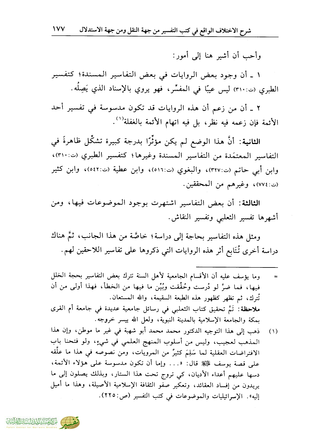= وما يؤسف عليه أن الأقسام الجامعية لأهل السنة تترك بعض التفاسير بحجة الخلل فيها، فما ضرَّ لو دُرست وحُقِّقت وبُيِّن ما فيها من الخطأ، فهذا أولى من أن تُترك، ثم تظهر كظهور هذه الطبعة السقيمة، والله المستعان.