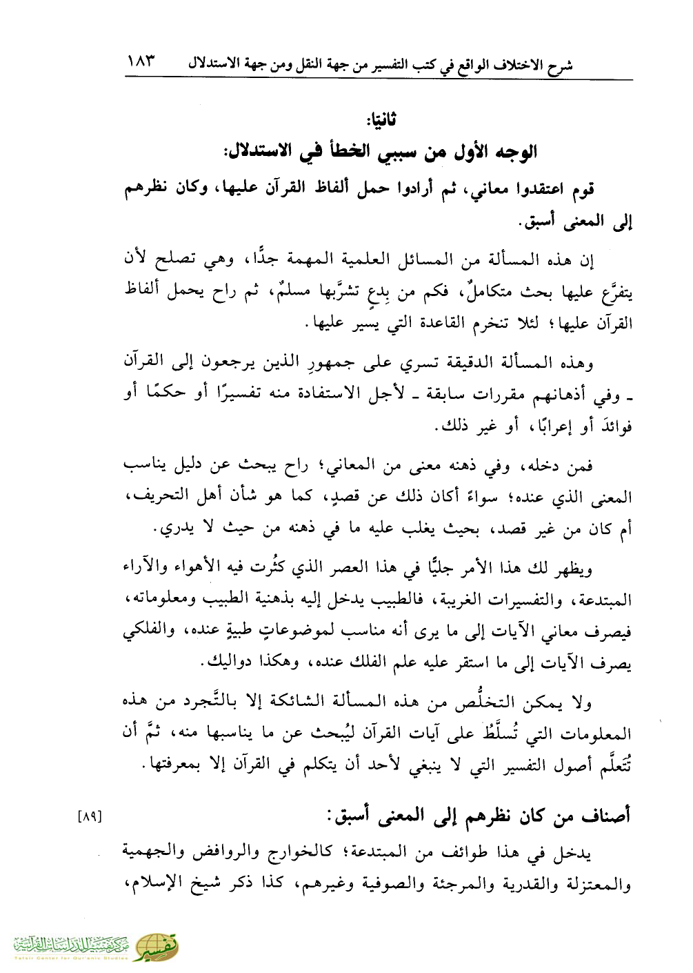 ثانيًا: الوجه الأول من سببي الخطأ في الاستدلال: