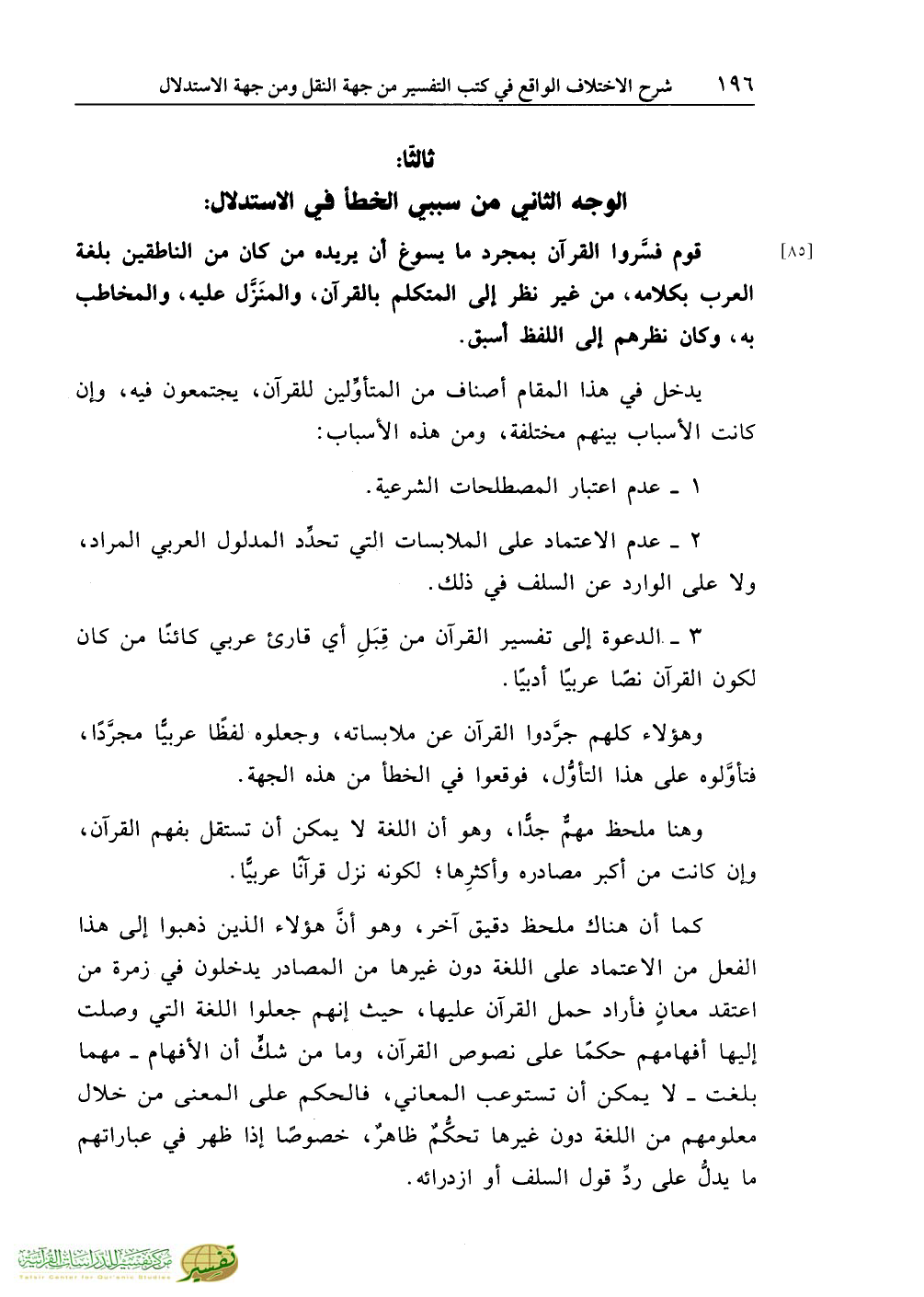 قوم فسَّروا القرآن بمجرد ما يسوغ أن يريده من كان من الناطقين بلغة العرب بكلامه، من غير نظر إلى المتكلم بالقرآن، والمنَزَّل عليه، والمخاطب به، وكان نظرهم إلى اللفظ أسبق.
