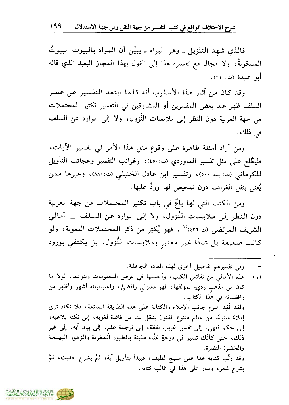 ومن الكتب التي لها باعٌ في باب تكثير المحتملات من جهة العربية دون النظر إلى ملابسات النُّزول، ولا إلى الوارد عن السلف = أمالي الشريف المرتضى (ت:436) (¬1)، فهو يُكثِر من ذكر المحتملات اللغوية، ولو كانت ضعيفة بل شاذَّة غير معتبرٍ بملابسات النُّزول، بل يكتفي بورود