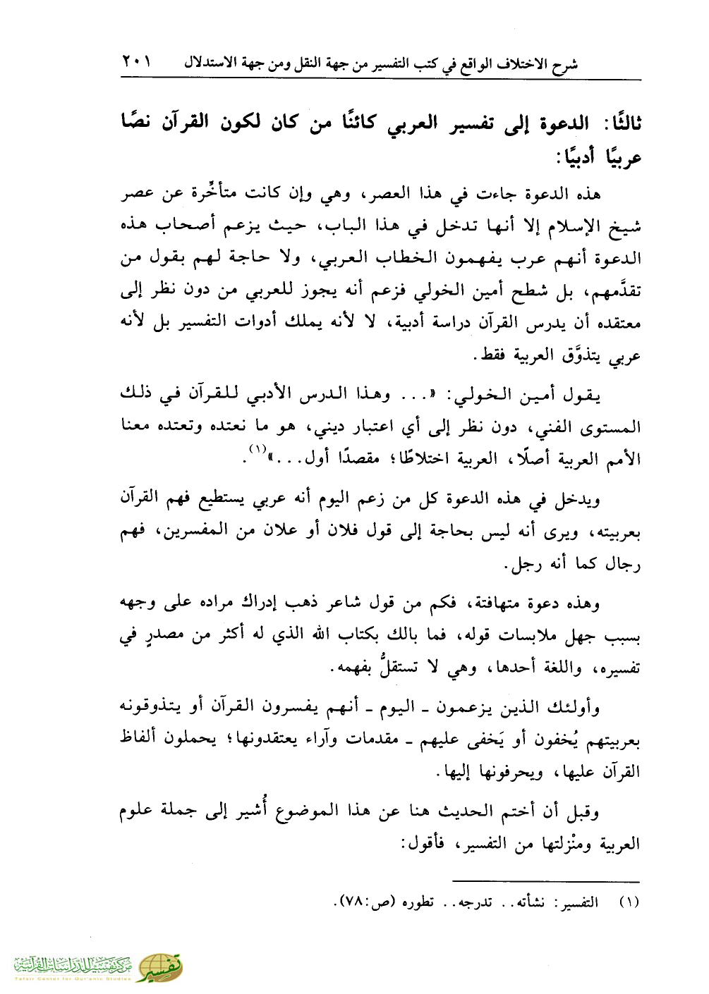 ثالثًا: الدعوة إلى تفسير العربي كائنًا من كان لكون القرآن نصًا عربيًا أدبيًا: