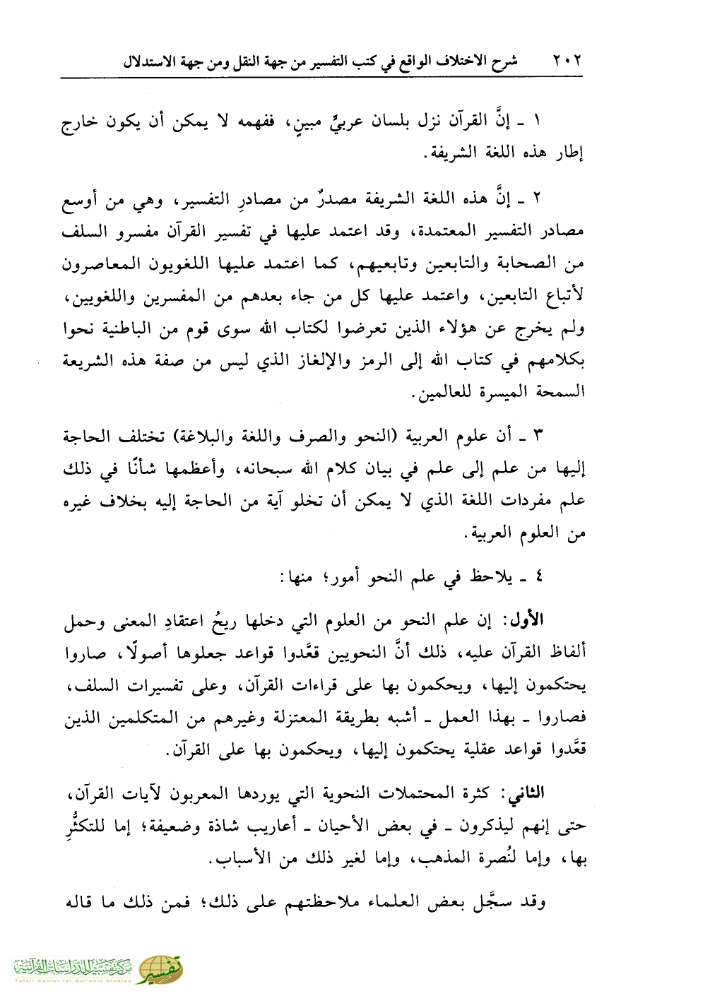 3 - أن علوم العربية (النحو والصرف واللغة والبلاغة) تختلف الحاجة إليها من علم إلى علم في بيان كلام الله سبحانه، وأعظمها شأنًا في ذلك علم مفردات اللغة الذي لا يمكن أن تخلو آية من الحاجة إليه بخلاف غيره من العلوم العربية.