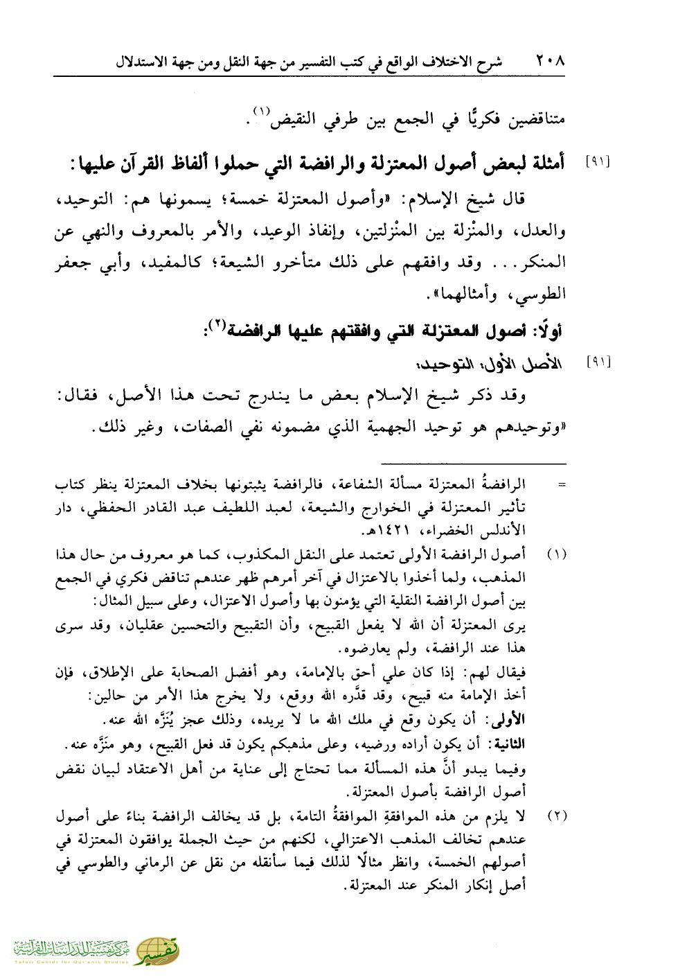 (¬1) أصول الرافضة الأولى تعتمد على النقل المكذوب، كما هو معروف من حال هذا المذهب، ولما أخذوا بالاعتزال في آخر أمرهم ظهر عندهم تناقض فكري في الجمع بين أصول الرافضة النقلية التي يؤمنون بها وأصول الاعتزال، وعلى سبيل المثال: