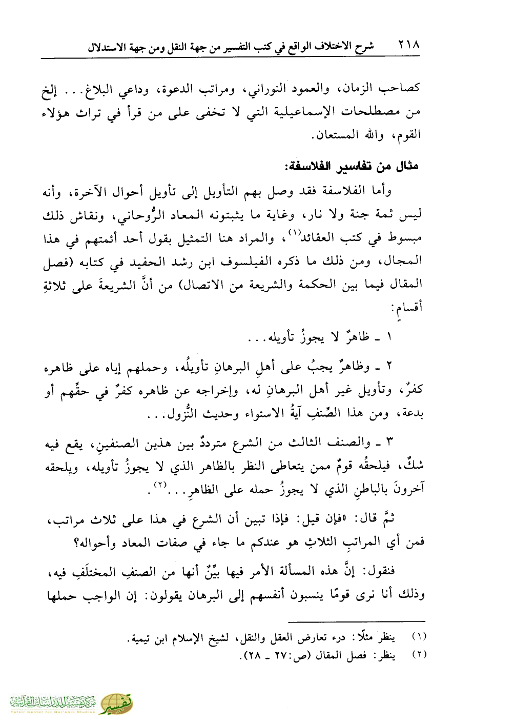 (¬1) ينظر مثلاً: درء تعارض العقل والنقل، لشيخ الإسلام ابن تيمية.