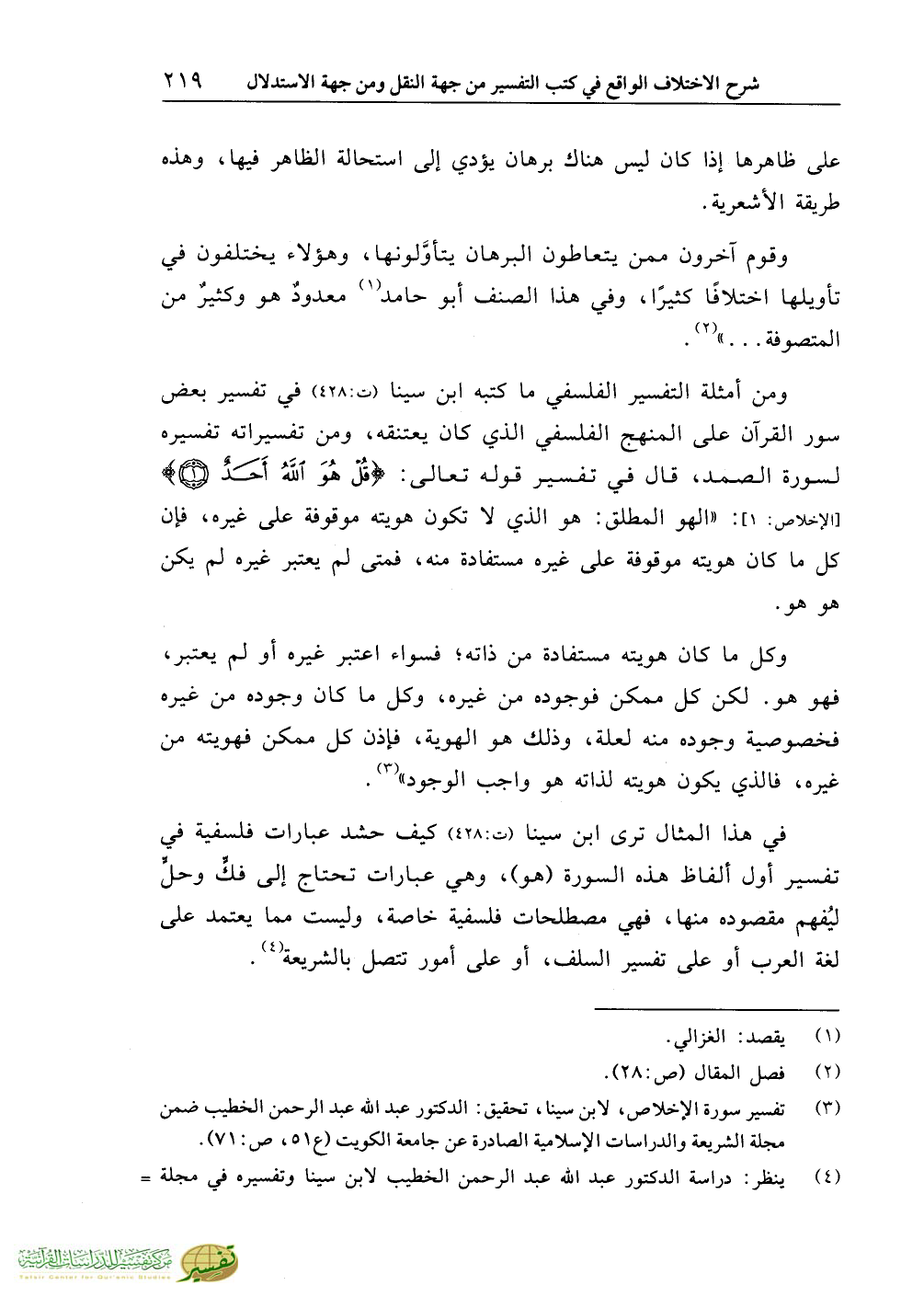(¬3) تفسير سورة الإخلاص، لابن سينا، تحقيق: الدكتور عبد الله عبد الرحمن الخطيب ضمن مجلة الشريعة والدراسات الإسلامية الصادرة عن جامعة الكويت (ع51، ص:71).