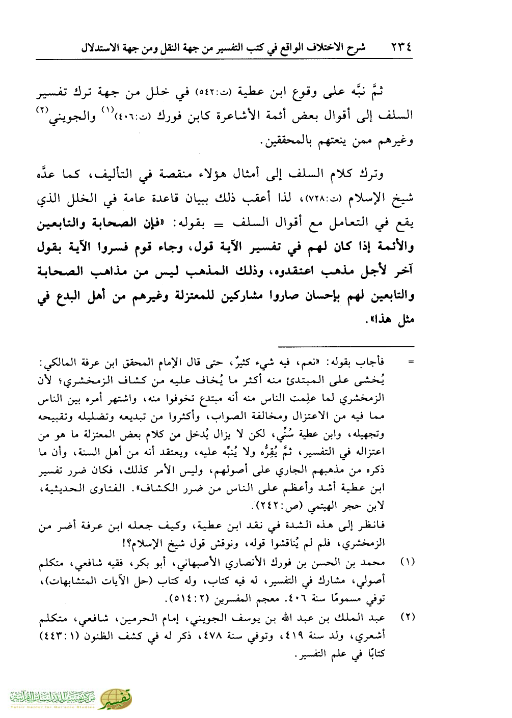 (¬2) عبد الملك بن عبد الله بن يوسف الجويني، إمام الحرمين، شافعي، متكلم أشعري، ولد سنة 419، وتوفي سنة 478، ذكر له في كشف الظنون (1:443) كتابًا في علم التفسير.