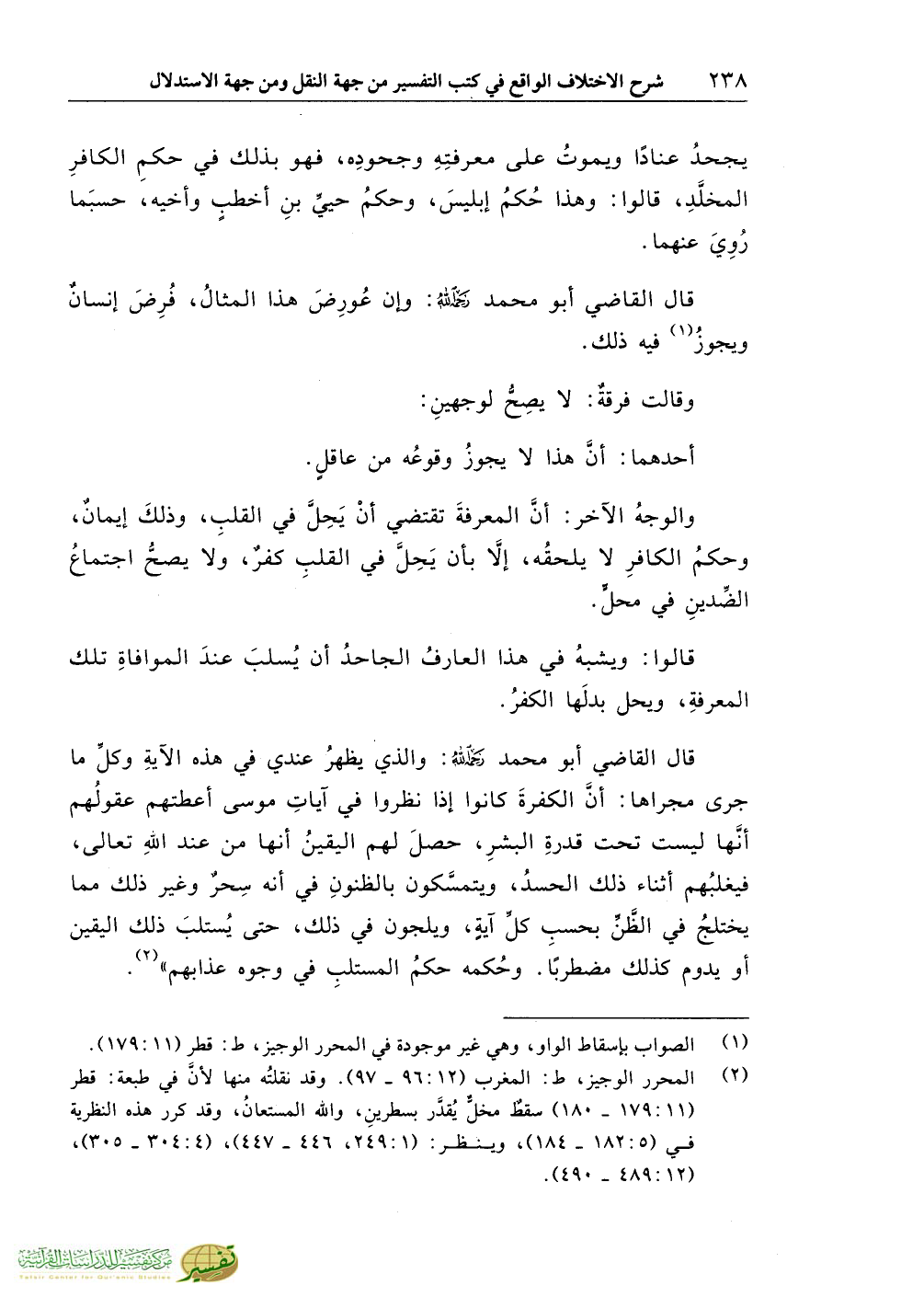 (¬1) الصواب بإسقاط الواو، وهي غير موجودة في المحرر الوجيز، ط: قطر (11:179).
