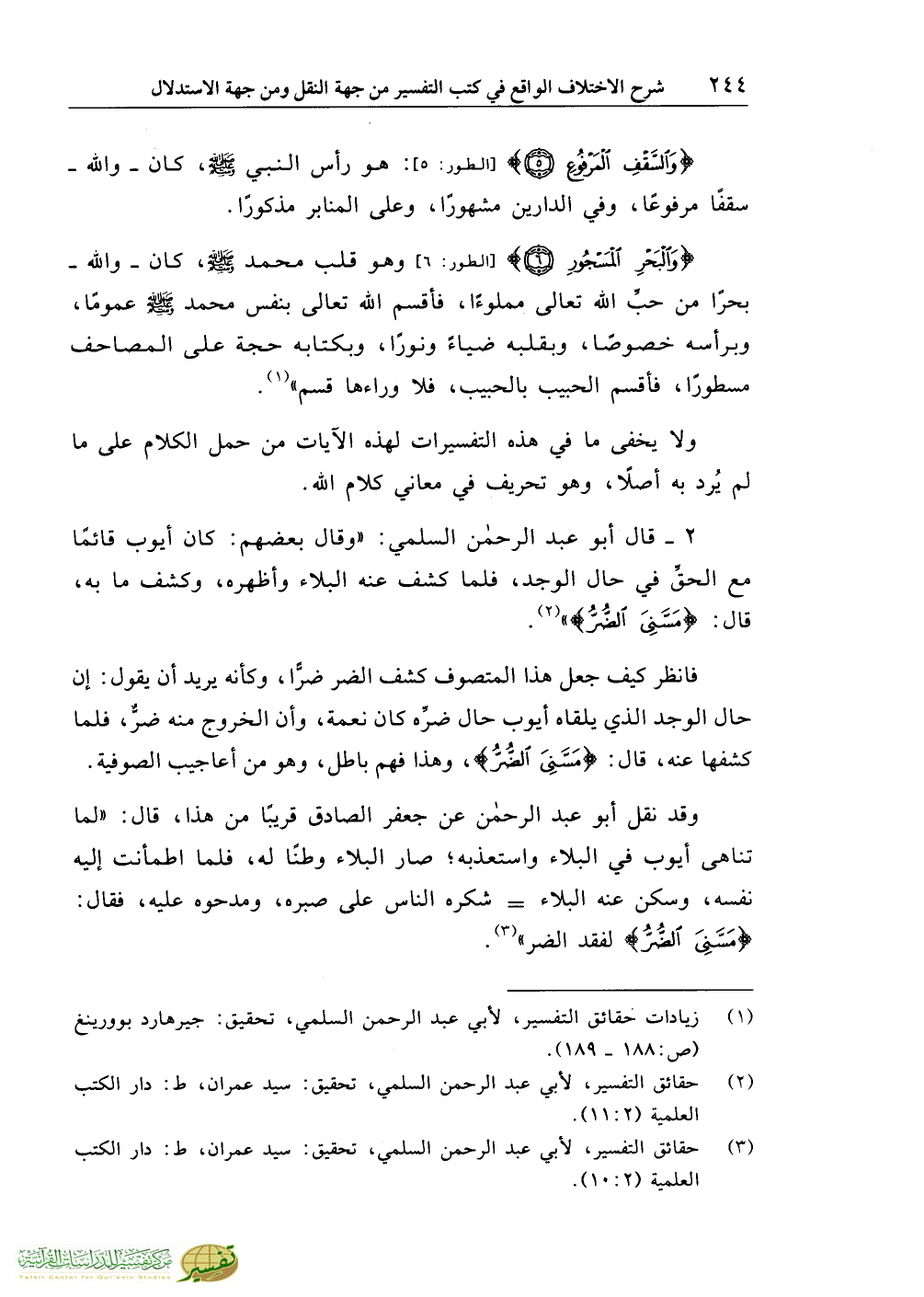 (¬3) حقائق التفسير، لأبي عبد الرحمن السلمي، تحقيق: سيد عمران، ط: دار الكتب العلمية (2:10).