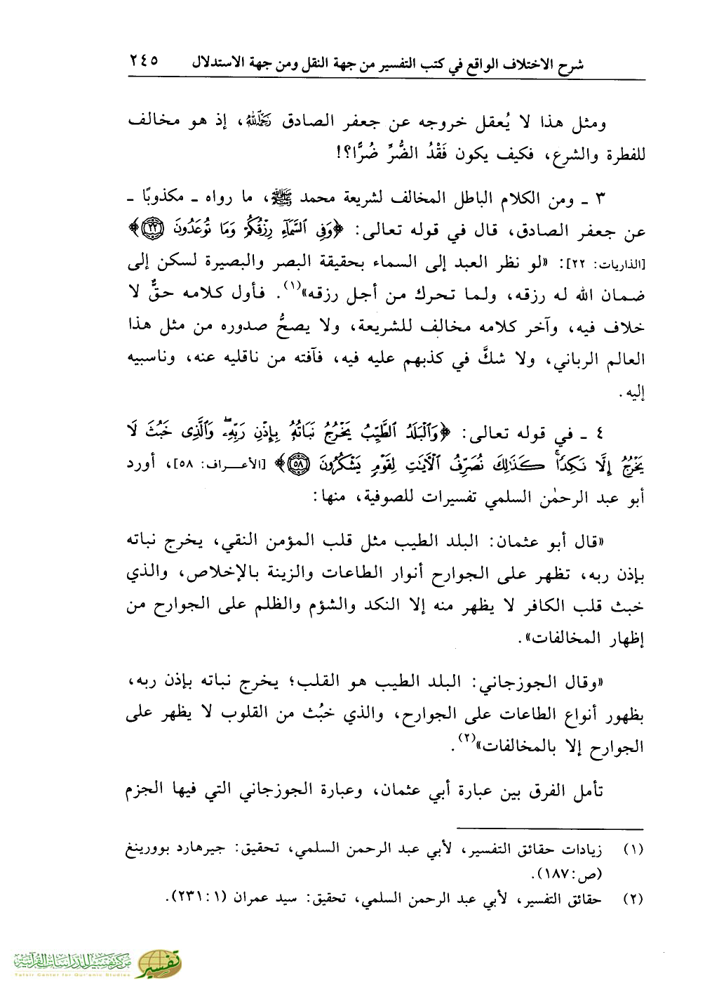 (¬1) زيادات حقائق التفسير، لأبي عبد الرحمن السلمي، تحقيق: جيرهارد بوورينغ (ص:187).