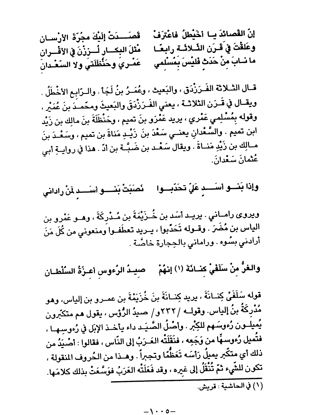والغرُّ مِنْ سَلَفَي كِنانَةَ إنهم ... صِيدُ الرُءوسِ أعِزّةُ السلطان