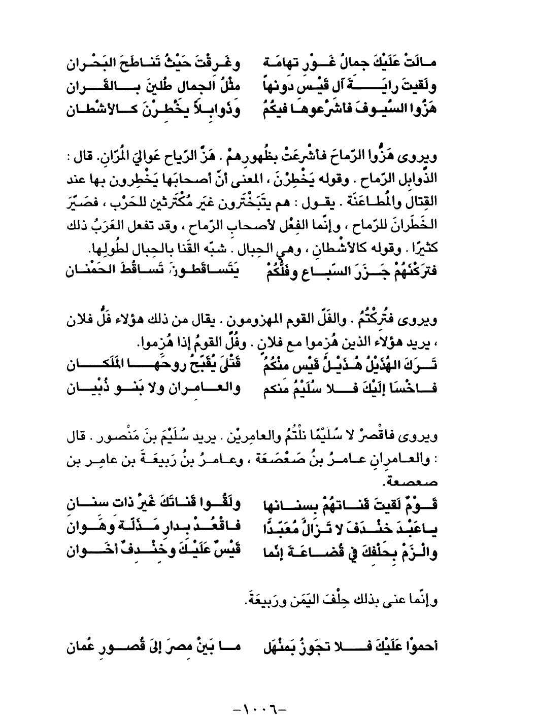 أحموا عليكَ فلا تجوزُ بَمنهَل ... ما بين مِصرَ إلى قُصورِ عُمان