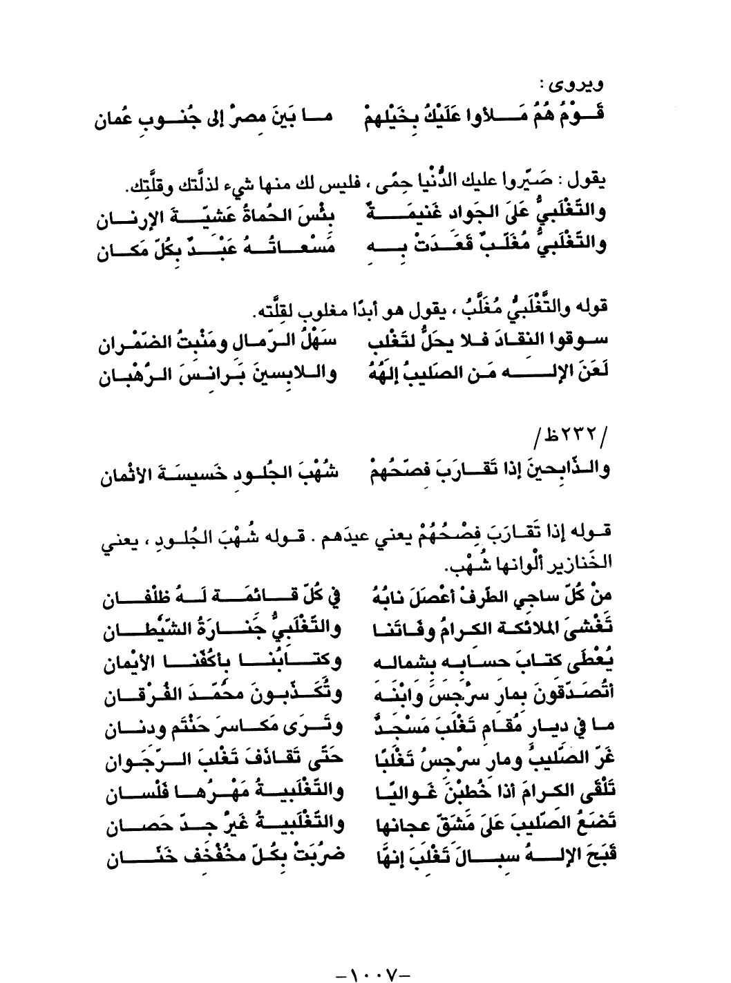 لَعنَ الإله مَن الصَليبُ إلهُهُ ... واللابِسينَ بَرانِسَ الرُهبان