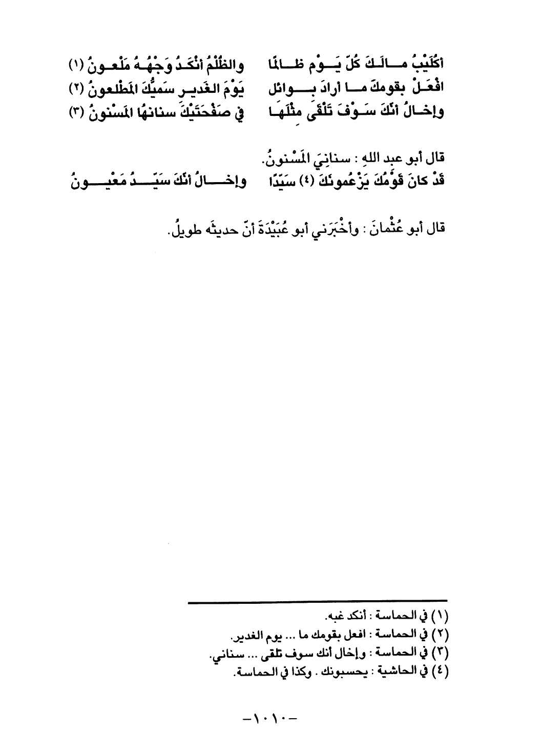 وإخالُ أنكَ سوفَ تلقَى مِثلَها ... في صفحَتَيكَ سنانهُا المَسنونُ