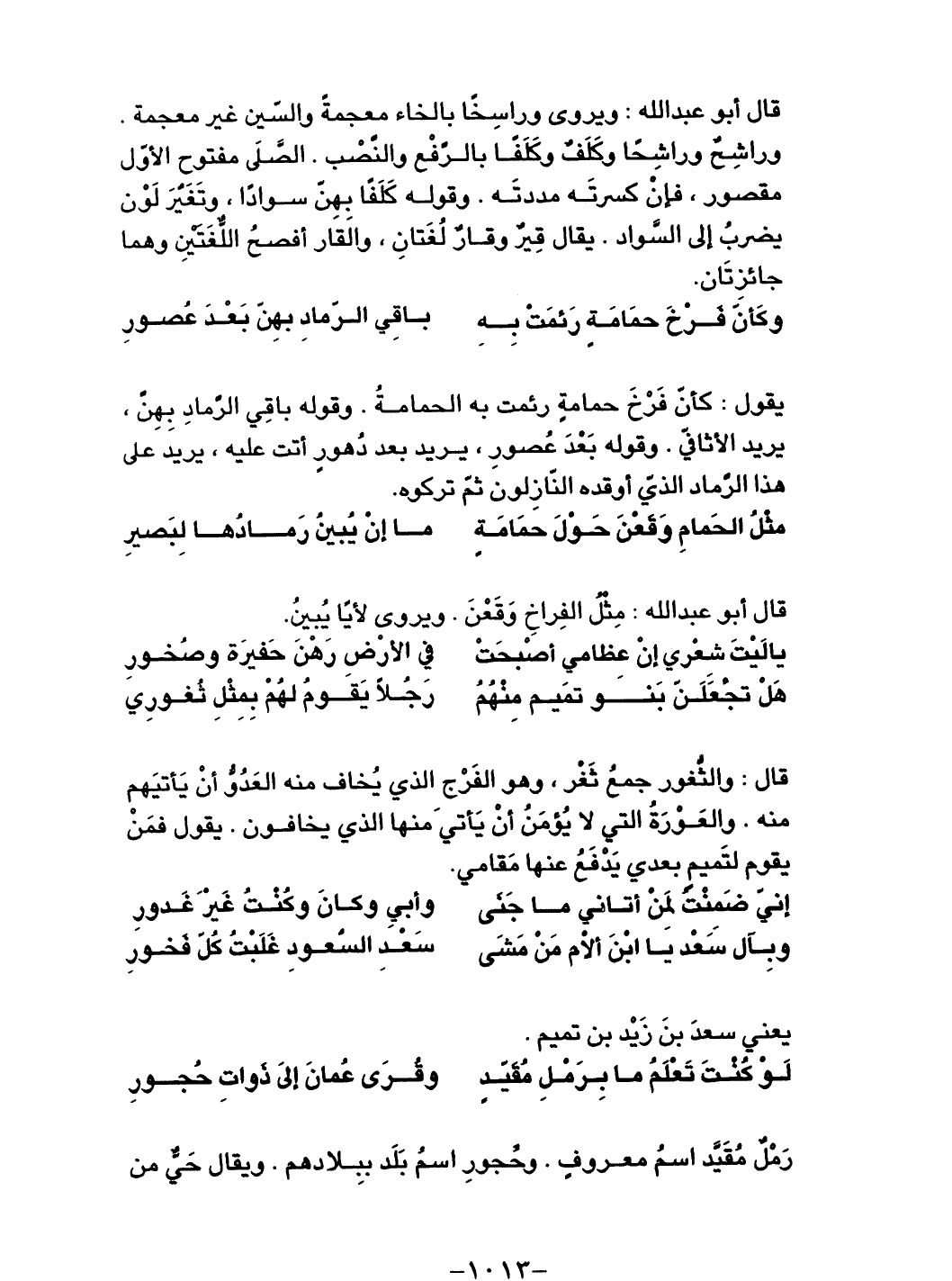 لو كنتَ تعلمُ ما بِرَملِ مُقَيّدٍ ... وقُرَى عُمانَ إلى ذواتِ حُجورِ