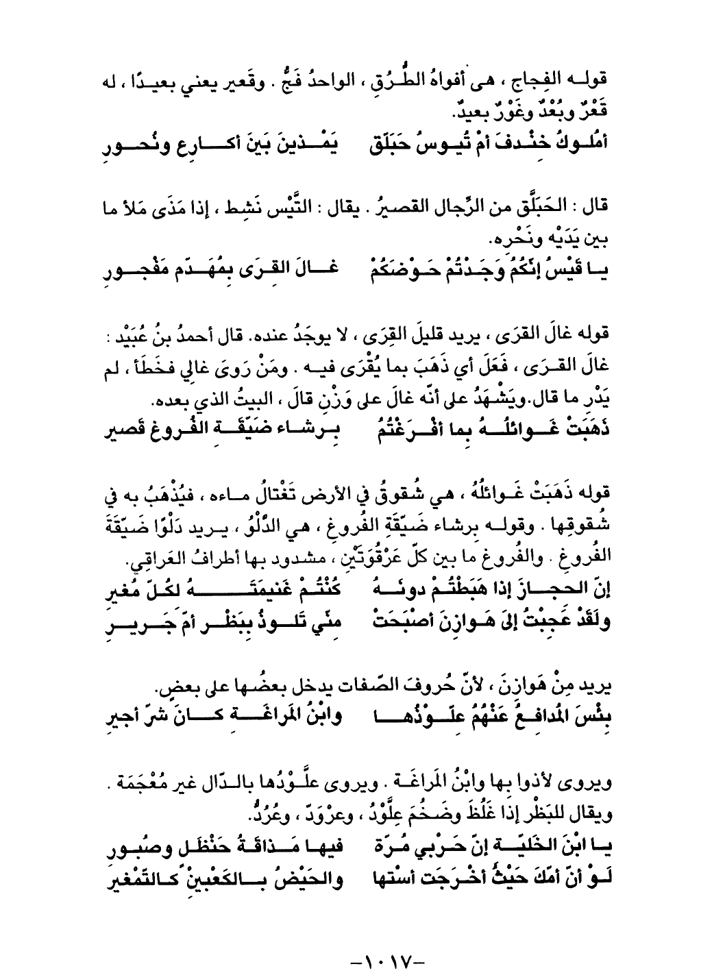 يا قَيسُ إنكُمُ وجدتُمْ حَوضَكُمْ ... غالَ القِرَى بمُهَدّم مَفْجورِ