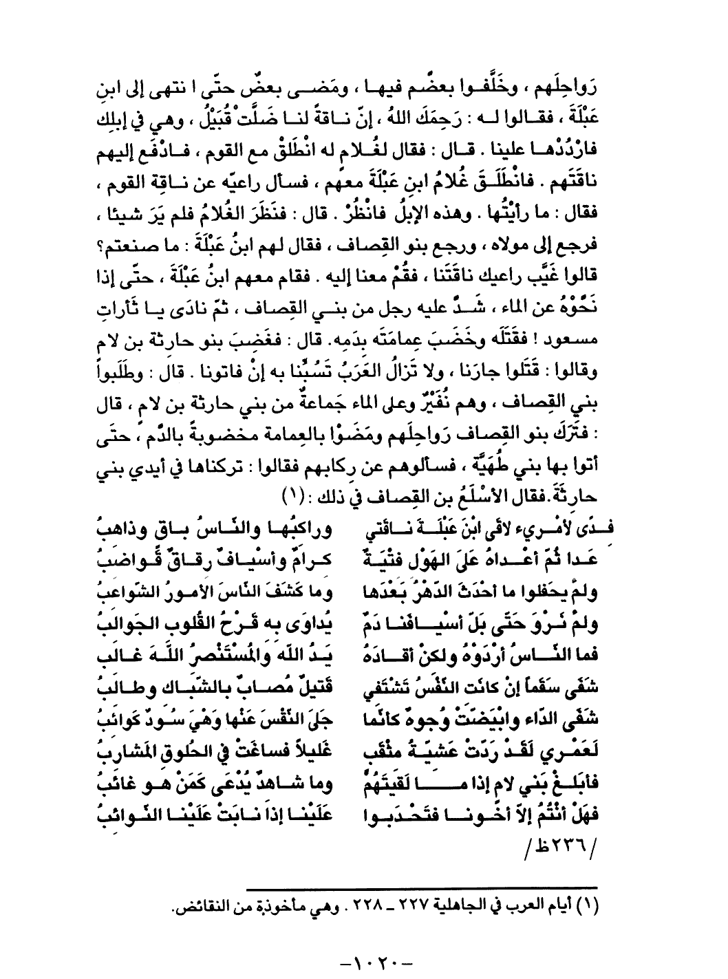 ومضوا مخضوبة بالدم، حتى أتوا بها بني طهية، فسألوهم عن ركابهم فقالوا: تركناها في أيدي بني
