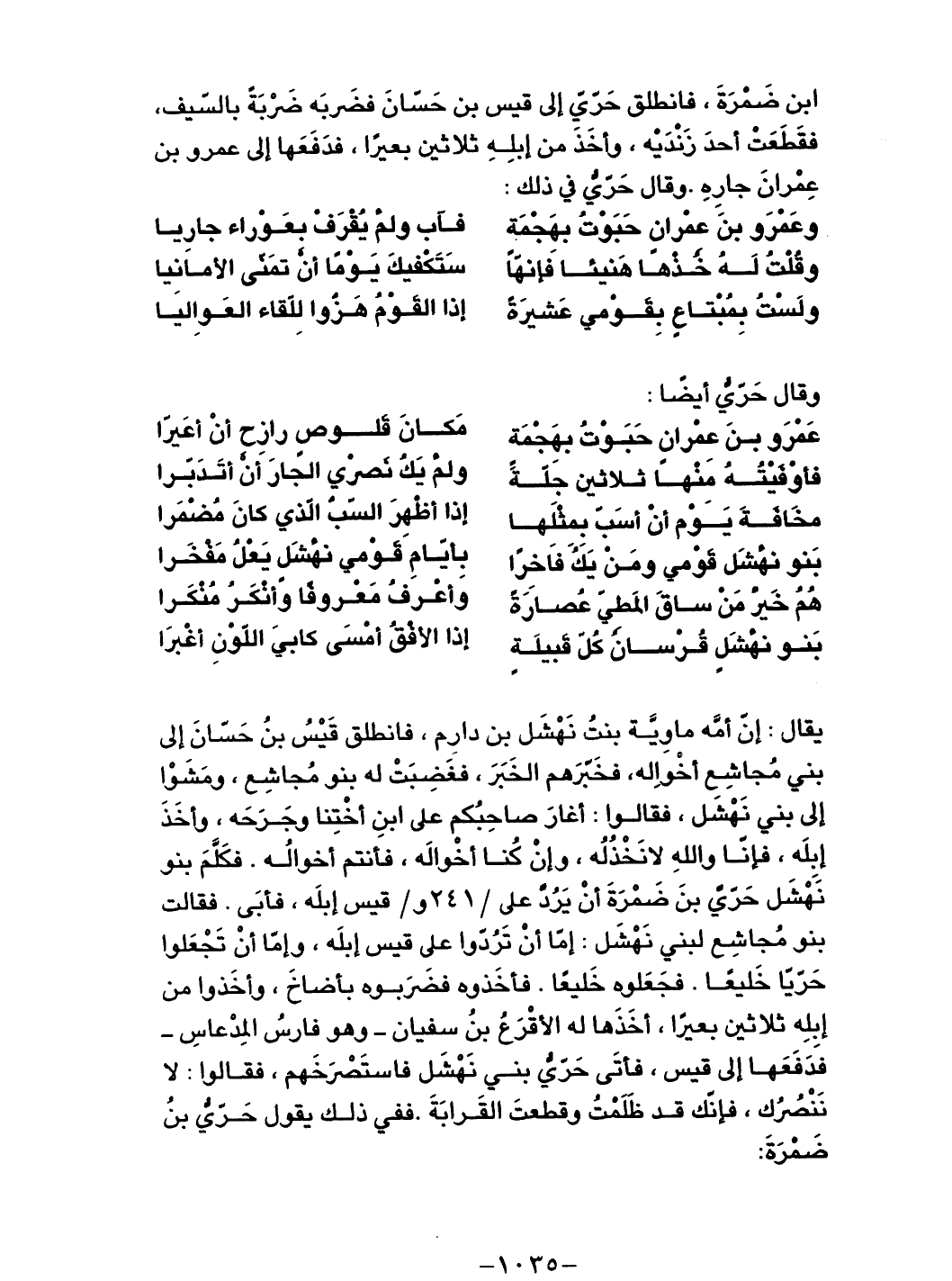 وأخذ إبله، فإنا والله لا نخذله، وإن كنا أخواله، فأنتم أخواله. فكلم بنو نهشل حري بن ضمرة أن يرد