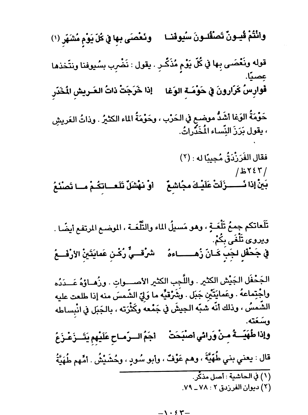وأنتم قُيونٌ تَصقُلونَ سُيوفَنا ... ونَعصى بها في كل يومٍ مُشهّرِ