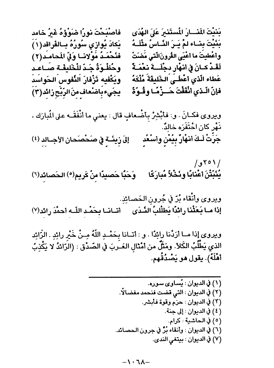 ويروى فكان. و: فأبشر بأضعاف قال: يعني ما أنفقه على المبارك، نهر كان احتفره خالد.