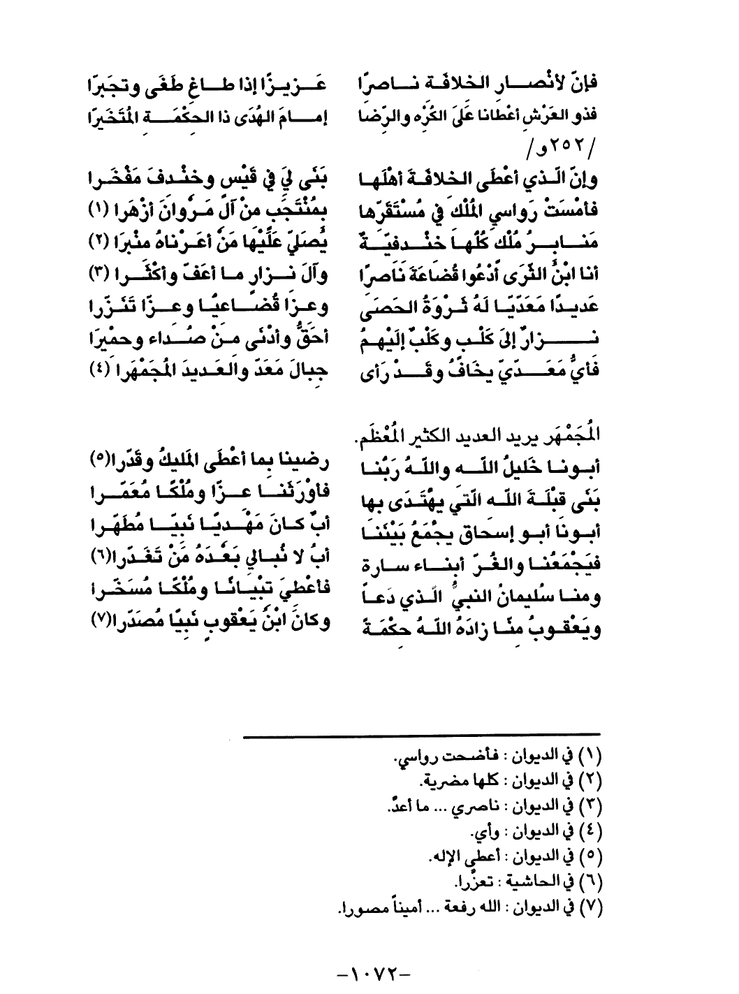 بنى قِبلَةَ اللهِ التي يهتدى بها ... فأورثَنا عِزا ومُلكاً مُعمّرا