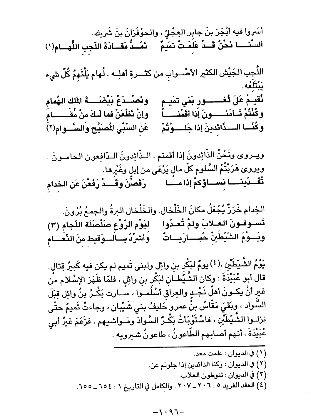 ألسنا نحنُ قد عَلِمَتْ تمَيمٌ ... نَمُدُّ مَقادَةَ اللّجِبِ اللُّهام