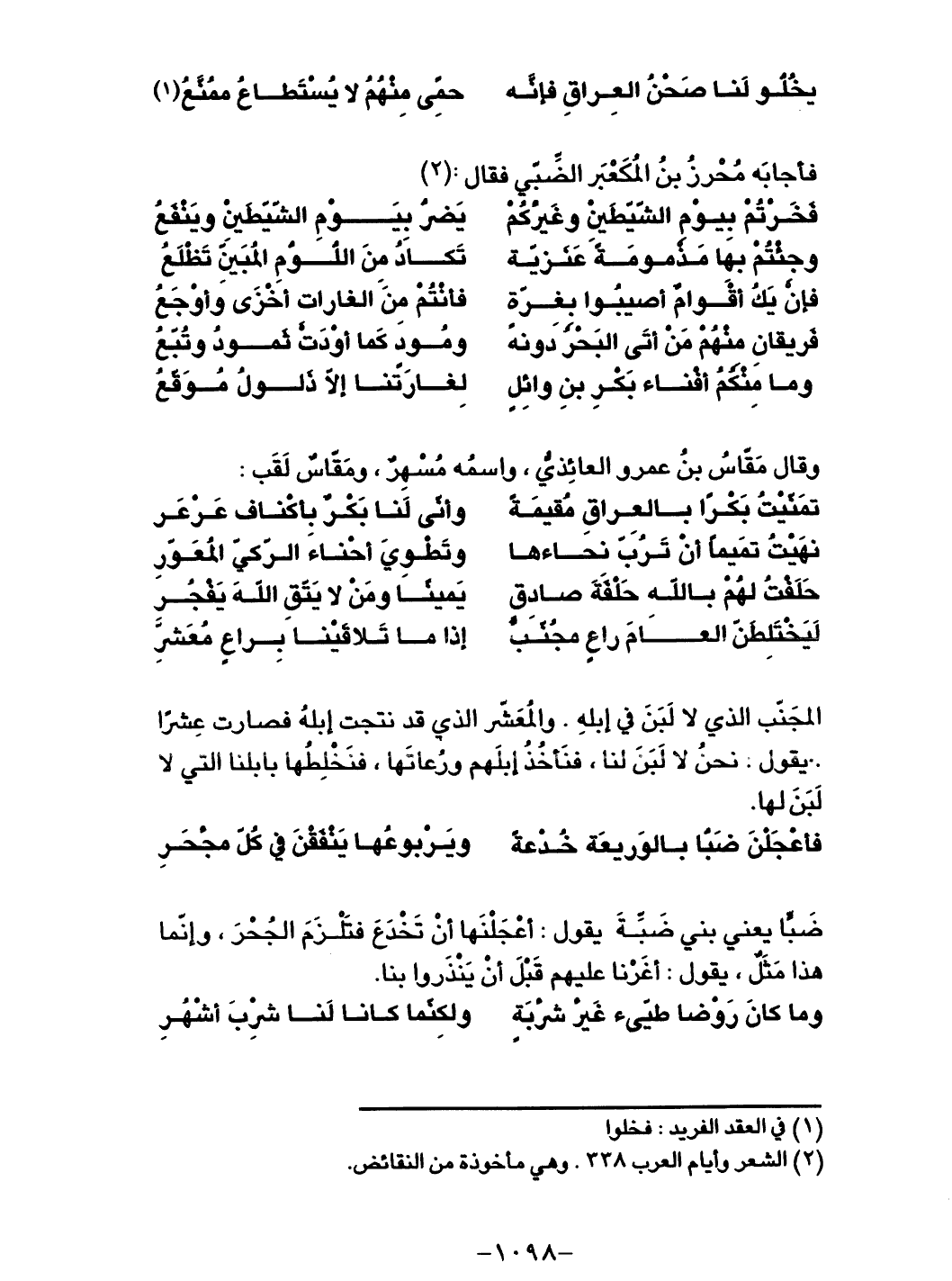 وقال مقاس بن عمرو العائذي، واسمه مسهر، ومقاس لقب: