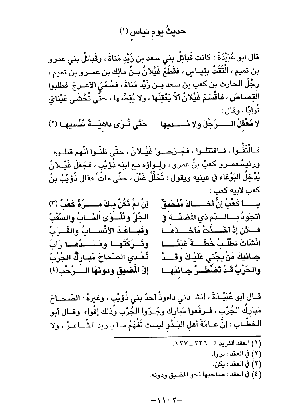 قال أبو عبيدة: كانت قبائل بني سعد بن زيد مناة، وقبائل بي عمرو بن تميم، التقت بتياس، فقطع