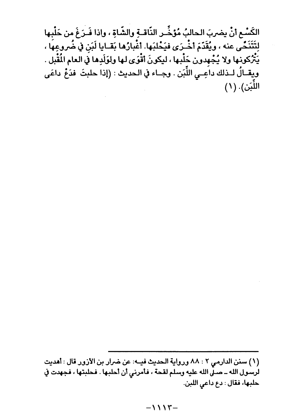 فيحلبها. أغبارها بقايا لبن في ضروعها، يتركونها ولا يُجهدون حلبها، ليكون أقوى لها ولولدها في