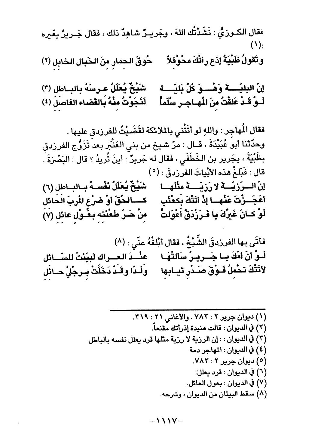له جرير: أين تريد؟ قال: البصرة. قال: فبّلغ هذه الأبيات الفرزدق:
