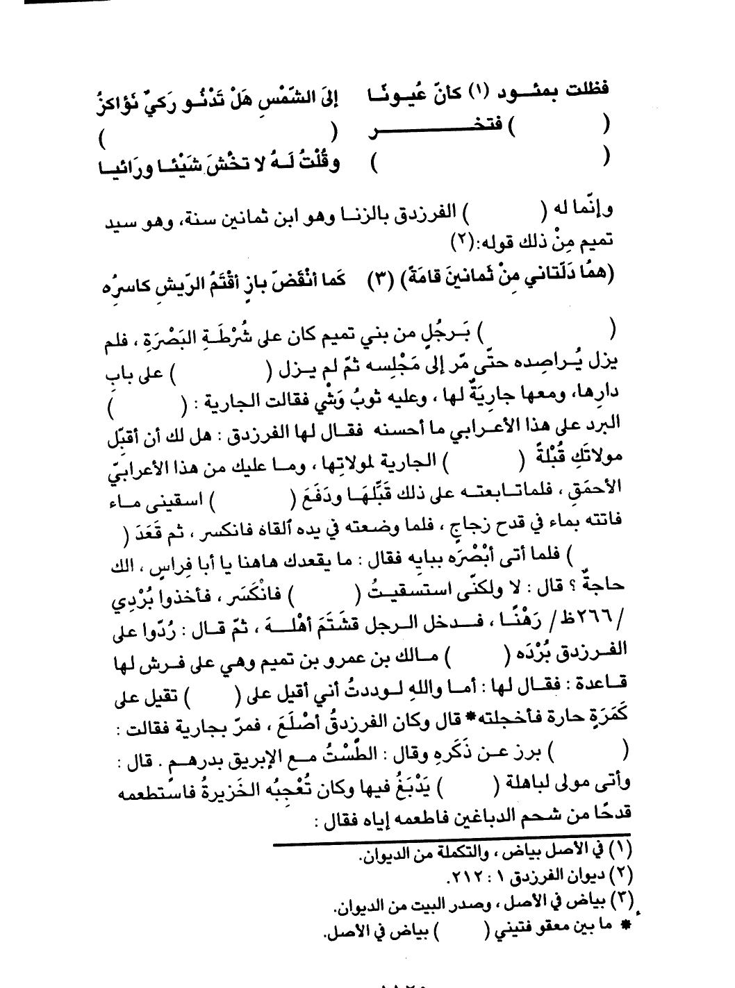 رُدوا الفرزدق بُرده ... مالك بن عمرو بن تميم وهي على فرش لها قاعدة: فقال لها: أما والله لوددتُ