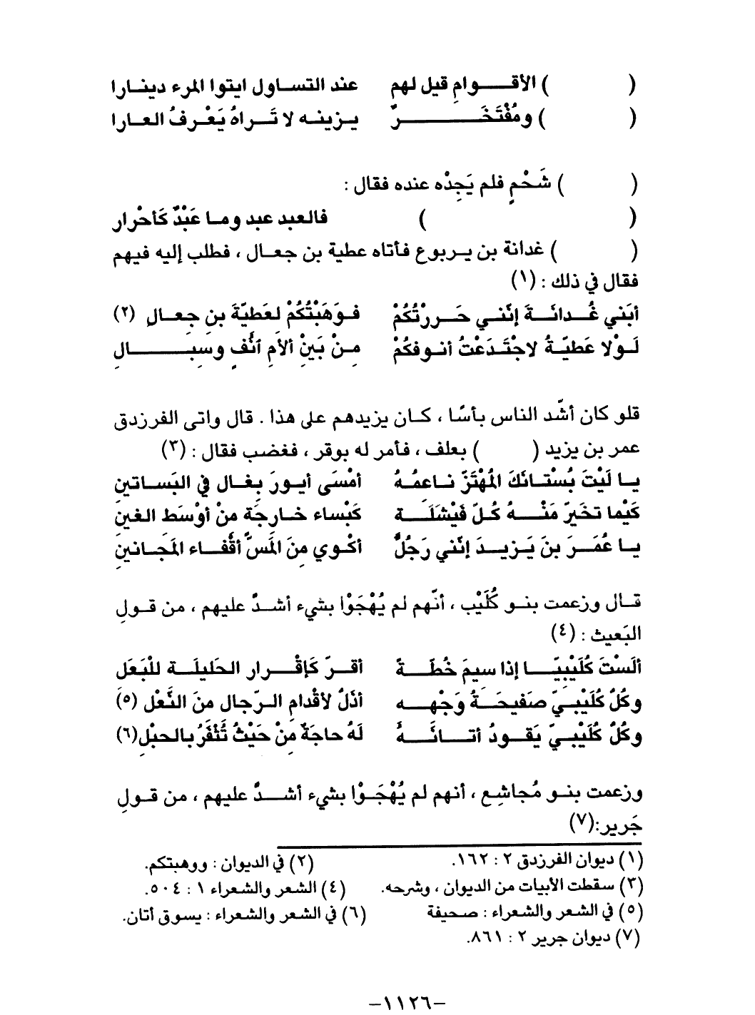 أبَني غُدانَةَ إنني حَررتُكُم ... فوَهبتُكُم لعَطيّةَ بنِ جِعالِ