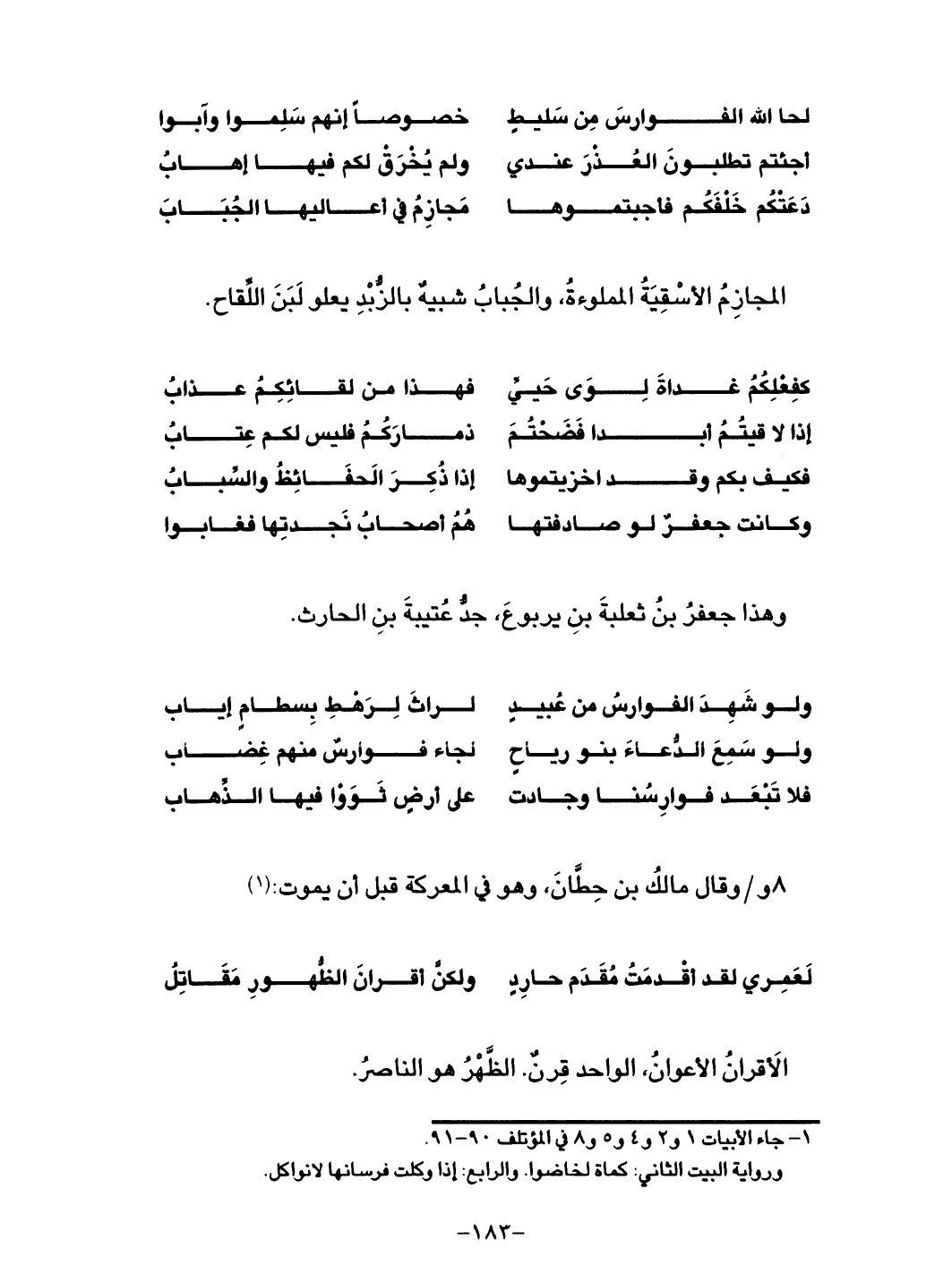 وقال مالكُ بن حِطَّان، وهو في المعركة قبل أن يموت: