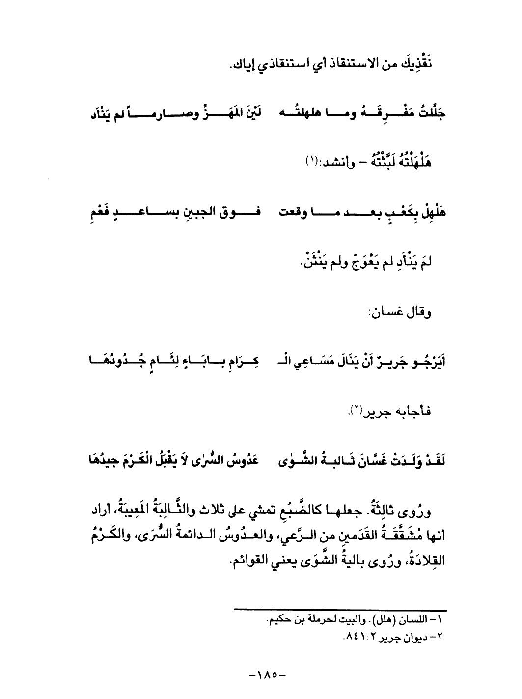 لَقَدْ وَلَدَتْ غَسَّانَ ثَالبةُ الشَّوى ... عَدُوسُ السُّرى لاَ يَقْبَلُ الْكَرْمَ جيدُهَا