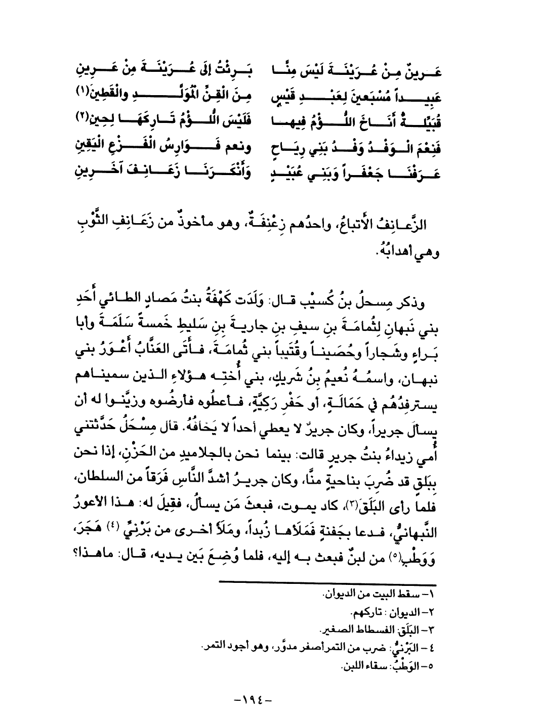 فأعطوه فأرضوه وزيَّنوا له أن يسأل جريراً، وكان جريرٌ لا يعطي أحداً لا يخافُه. قال مِسحل حدَّثتني