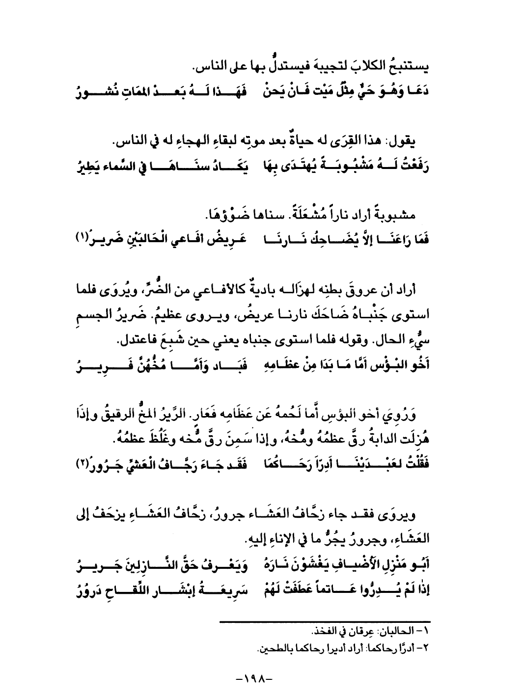 ويروى فقد جاء زحَّاف العشاء جرور، زحَّاف العشاء يزحف إلى العشاء، وجرور يجُرُّ ما في الإناء
