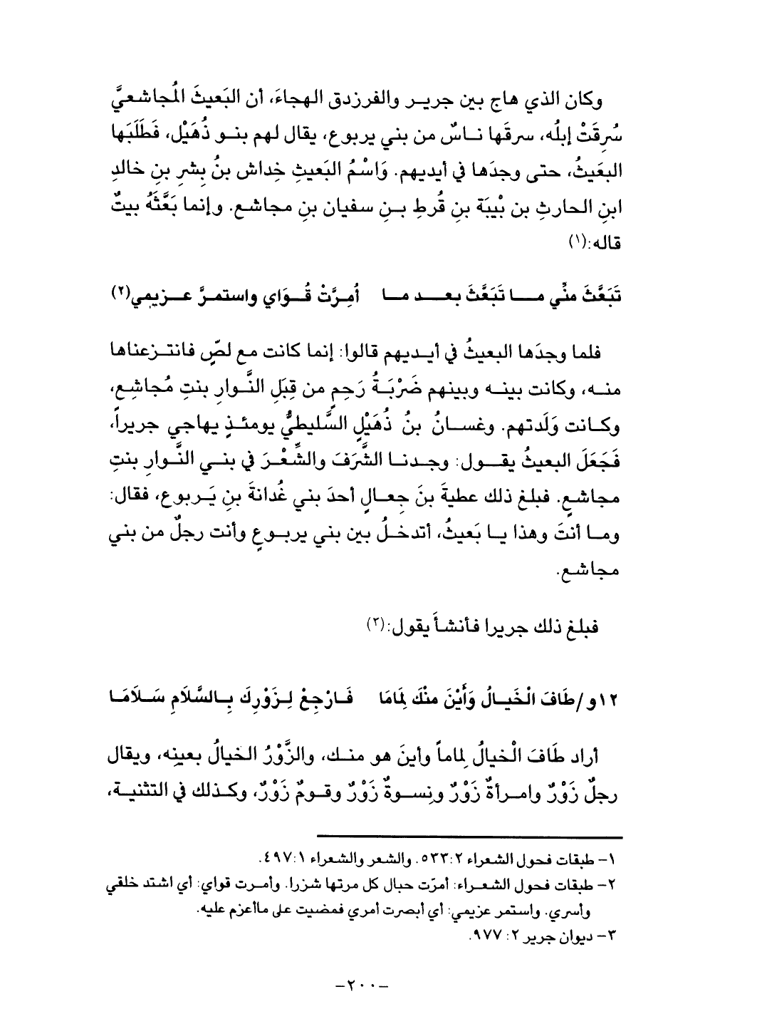 وكان الذي هاج بين جرير والفرزدق الهجاءَ، أن البَعيث المُجاشعيَّ سُرقت إبله، سرقها ناسٌ من بني