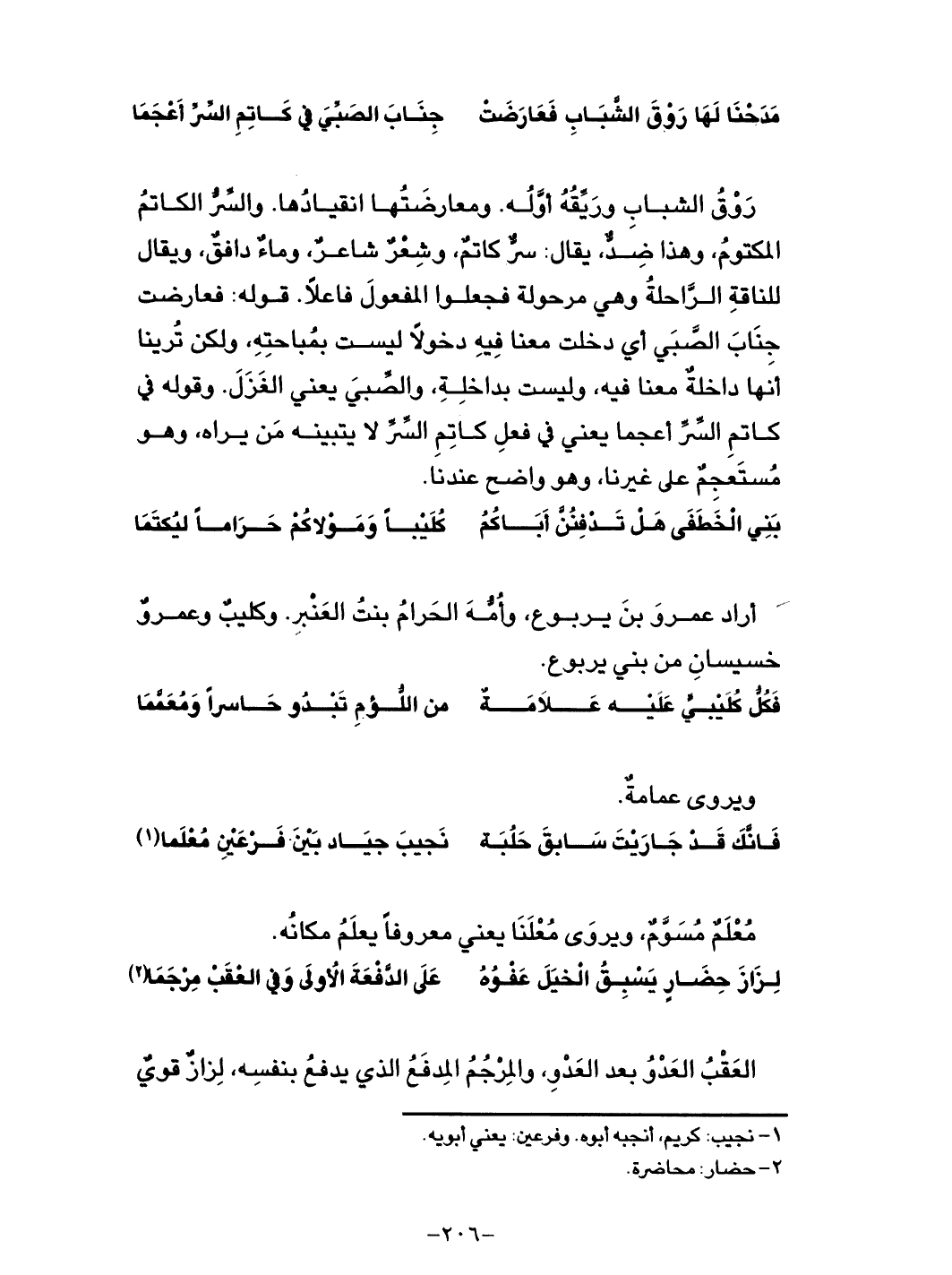 مَدَحنَا لها رَوقَ الشبابِ فعارضَتْ ... جِنَابَ الصَبّيَ في كاتِمِ السِّرِّ أعجمَا