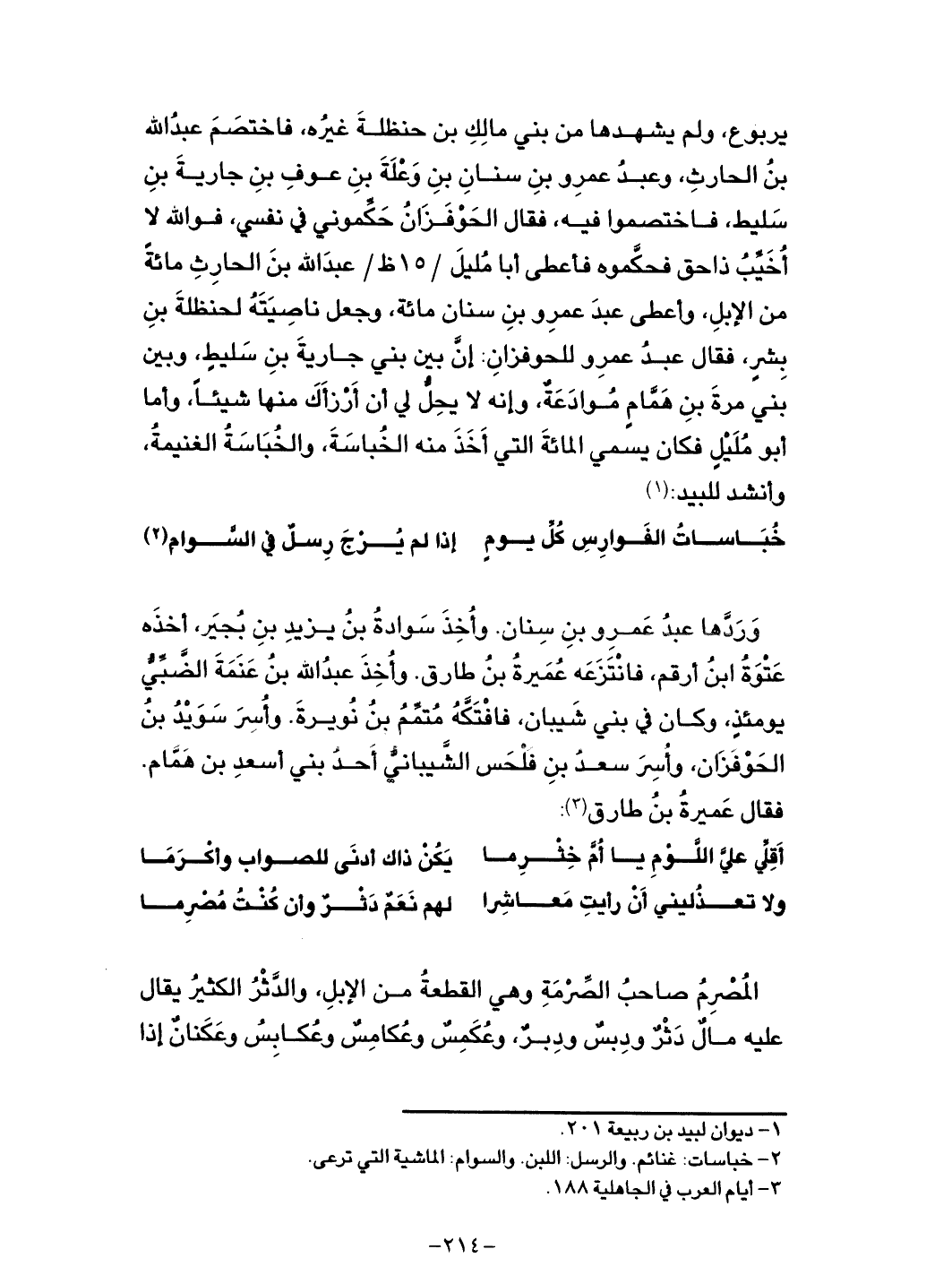 خُبَاساتُ الفوارِسِ كُلِّ يومٍ ... إذا لم يُرْجَ رِسلٌ في السَّوام
