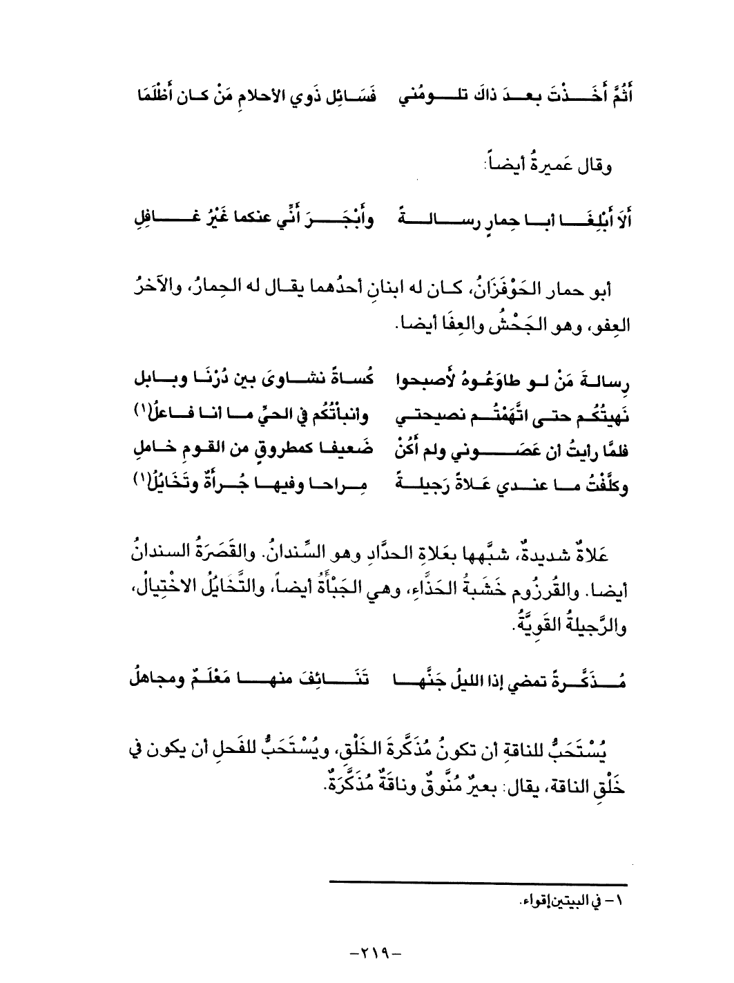 ألاَ أبلِغَا أبا حِمارٍ رسالةً ... وأبجَرَ أنّي عنكما غيرُ غافِلِ