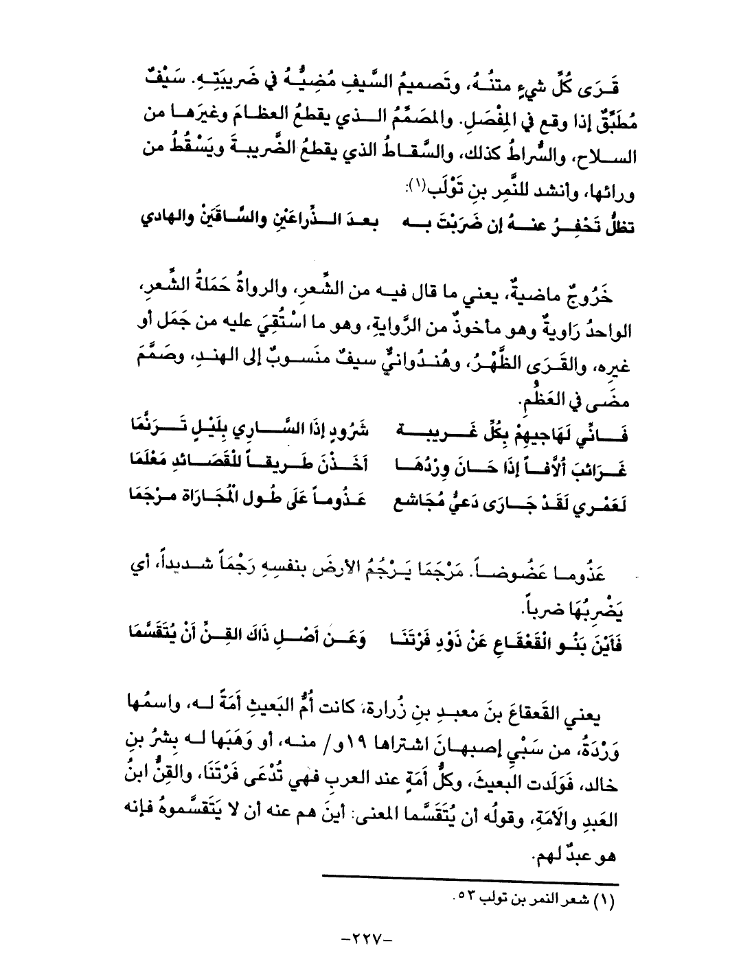 تظلُّ تحفِرُ عنهُ إن ضَربتَ به ... بعدَ الذراعينِ والساقين والهادي