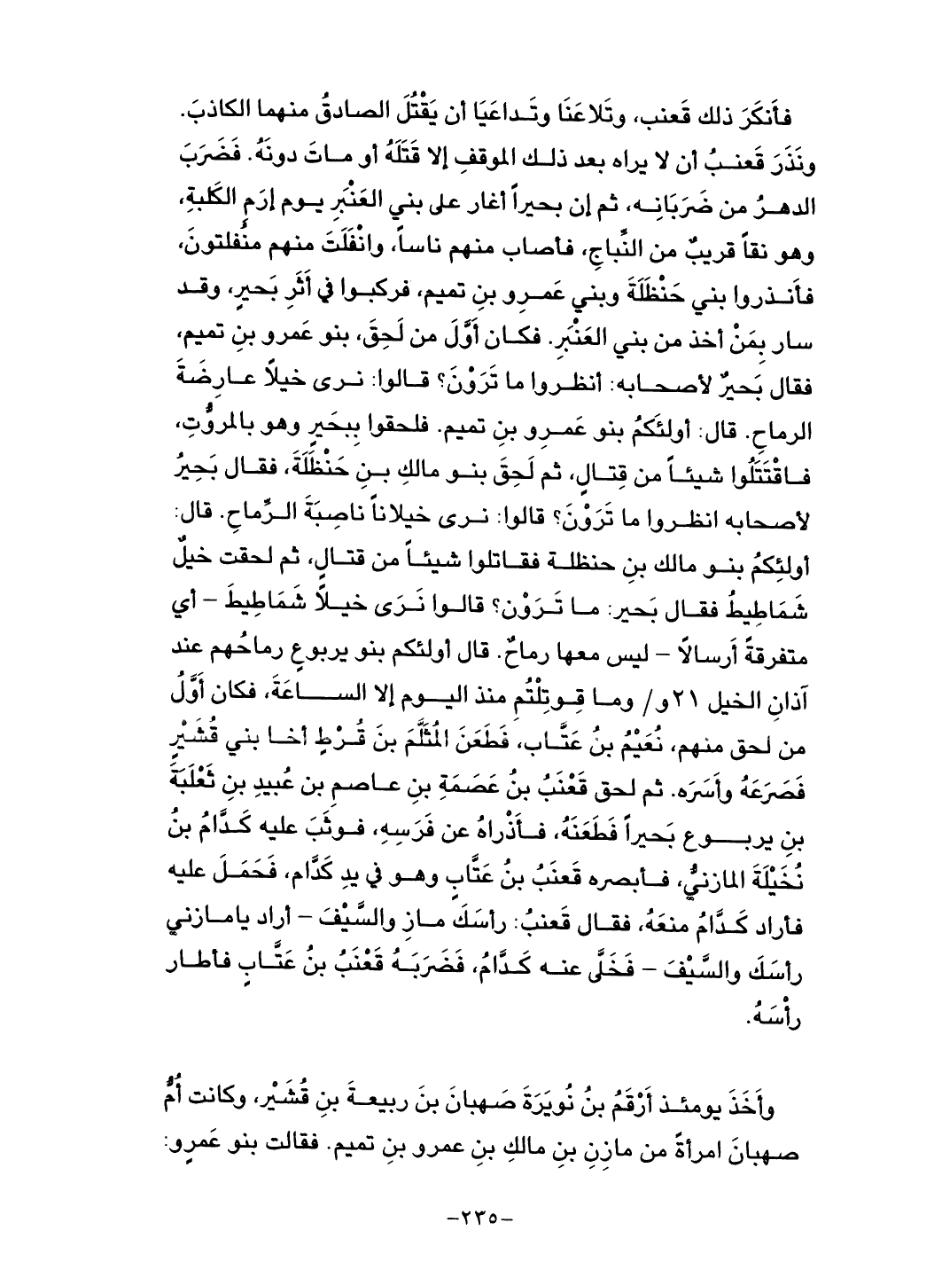 قشير فصرعه وأسره. ثم لحق قعنب بن عصمة بن عاصم بن عبيد بن ثعلبة بن يربوع بحيراً