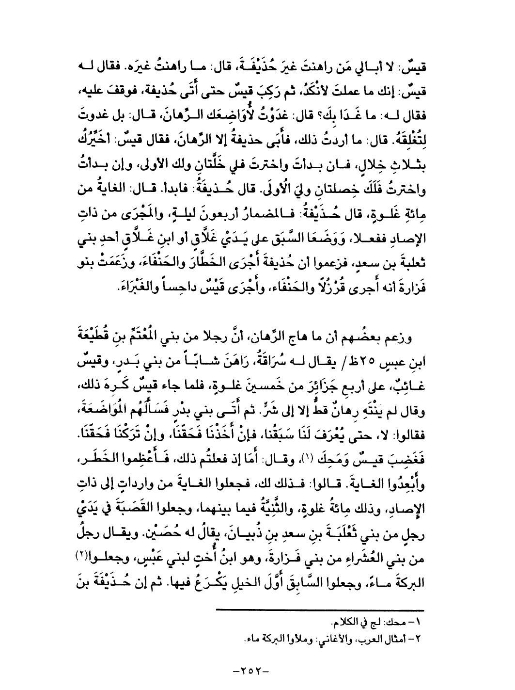 قال: ما أردت ذلك، فأبى حذيفة إلا الرهان، فقال قيس: أخيّرك بثلاث خلال، فان بدأت واخترت فلي