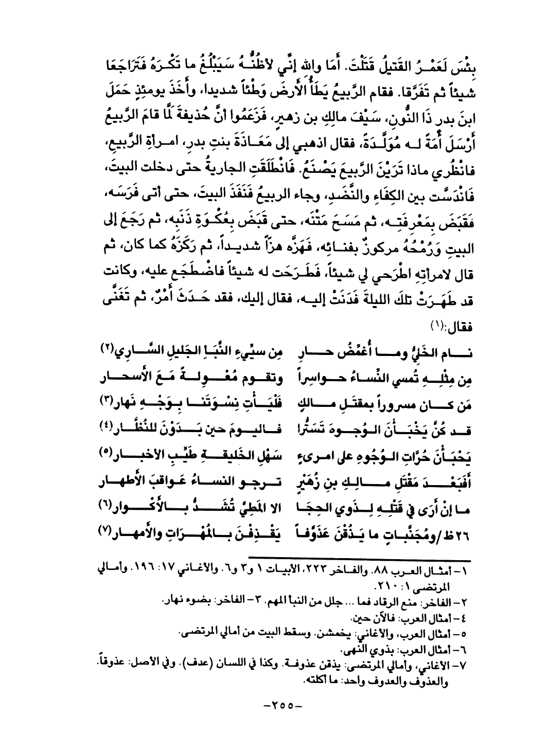 نام الخَليُّ وما أُغمِّضُ حارِ ... مِن سيِّيءِ النَّبَأِ الجليلِ السارِي