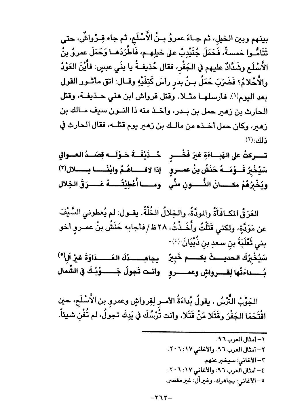 عمرو بن الأسلع وشداد عليهم في الجفر، فقال حذيفة يا بني عبس: فأين العود والأحلام؟ فضرب