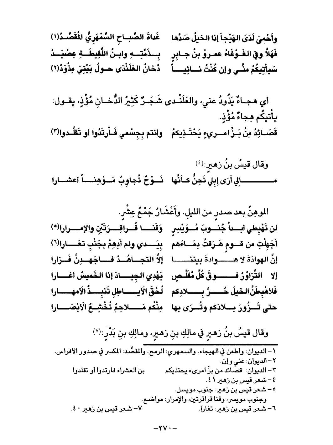 وأحمىَ لدى الهَيجا إذا الخيلُ صَدَّها ... غَداةَ الصَّباحِ السَّمهَرِيُّ المُقصَّدُ