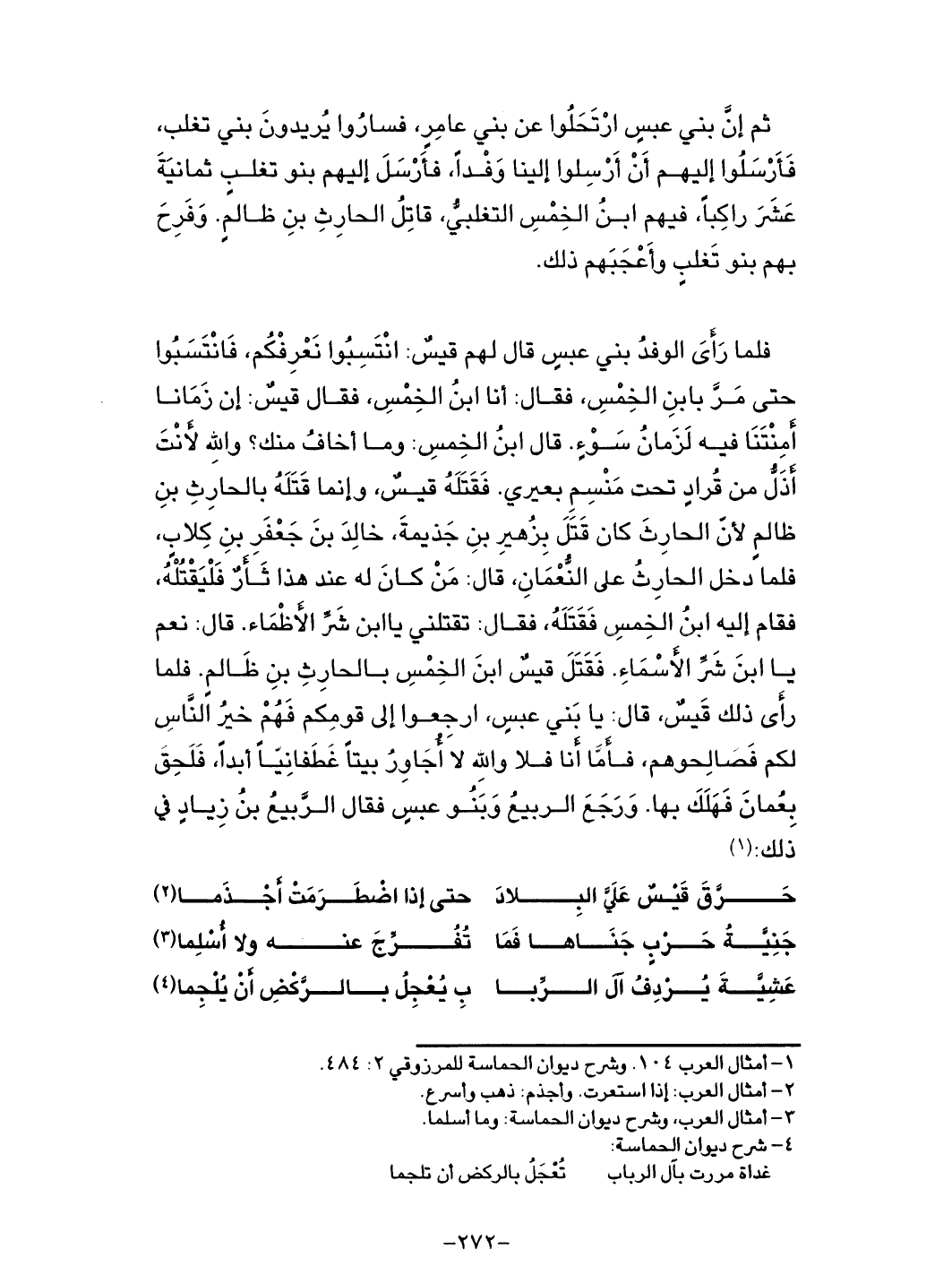 ثم إن بني عبس ارتحلوا عن بني عامر، فساروا يريدون بني تغلب، فأرسلوا إليهم أن أرسلوا إلينا
