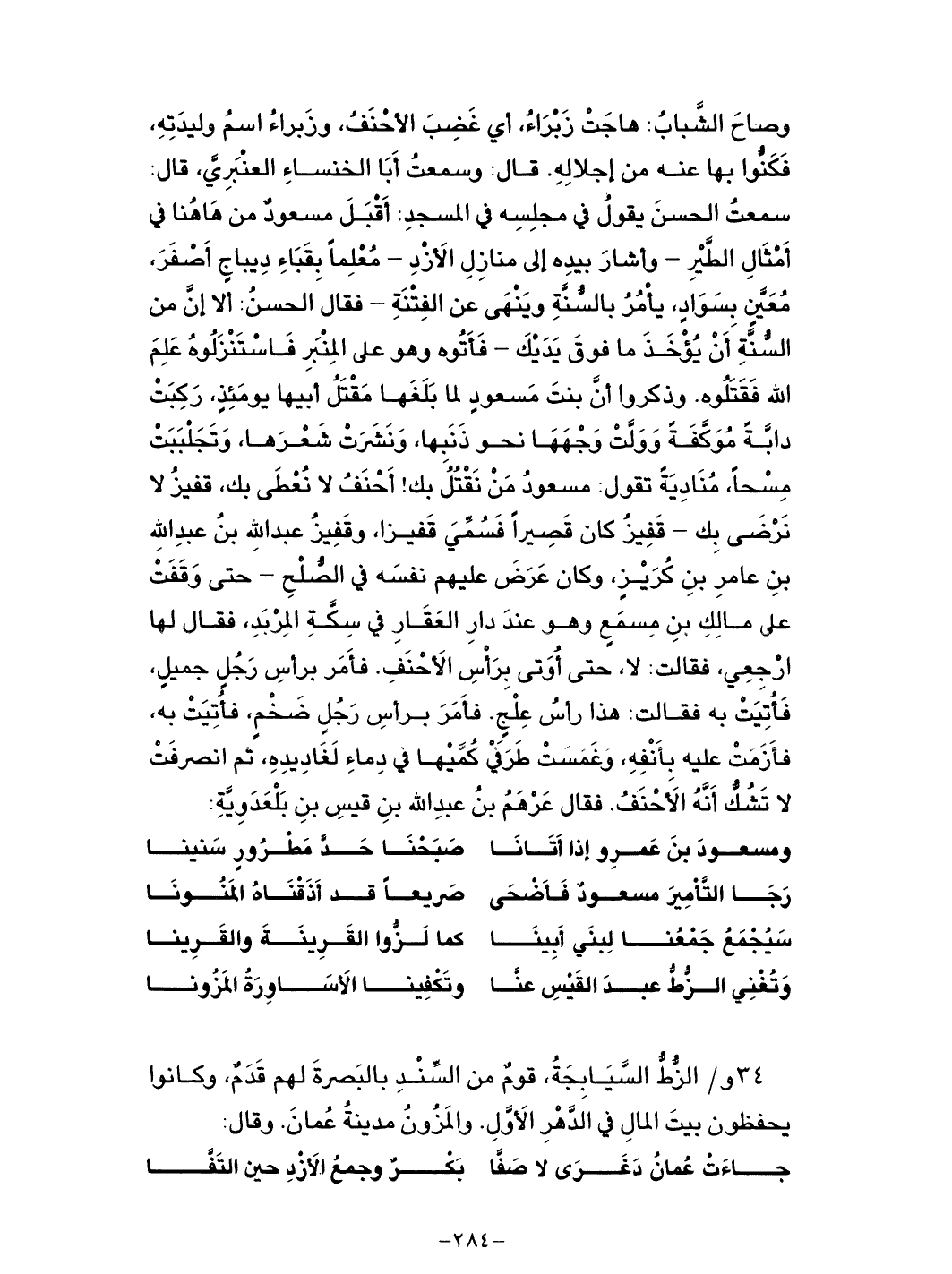 وتجلببت مسحاً، منادية تقول: مسعود من نقتل بك! أحنف لا نعطى بك، قفيز لا نرضى بك - قفيز