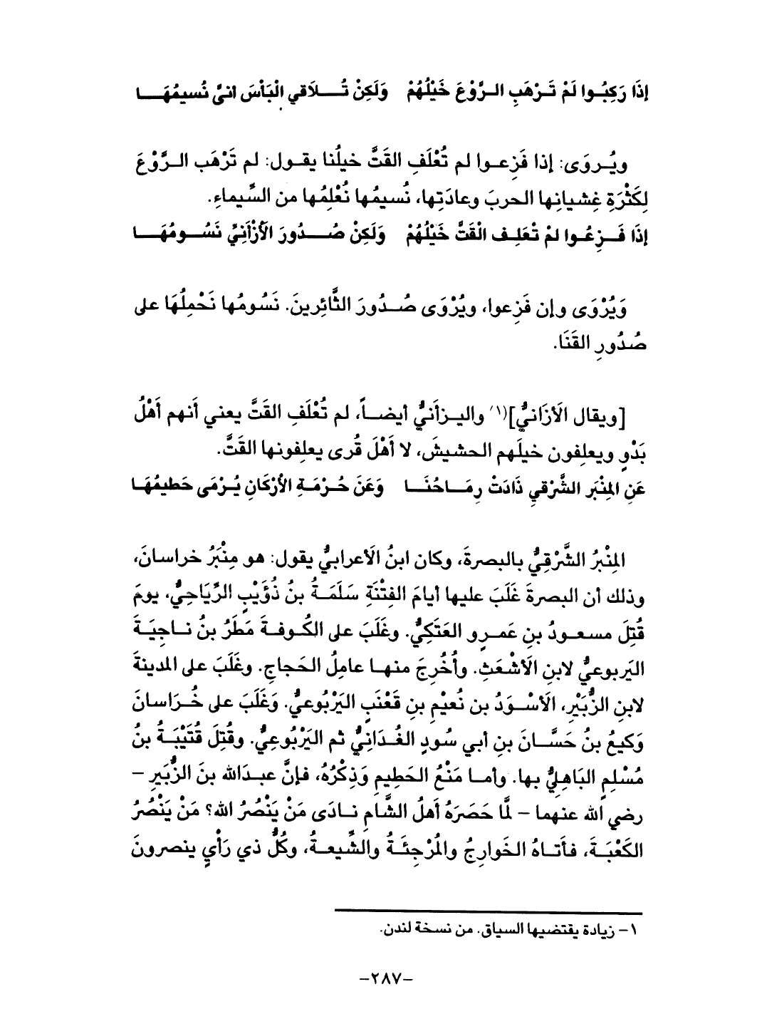 ويقال الأزاني واليزأني أيضاً، لم تُعلف القتّ يعني أنهم أهل بدو ويعلفون خيلهم الحشيش، لا أهل
